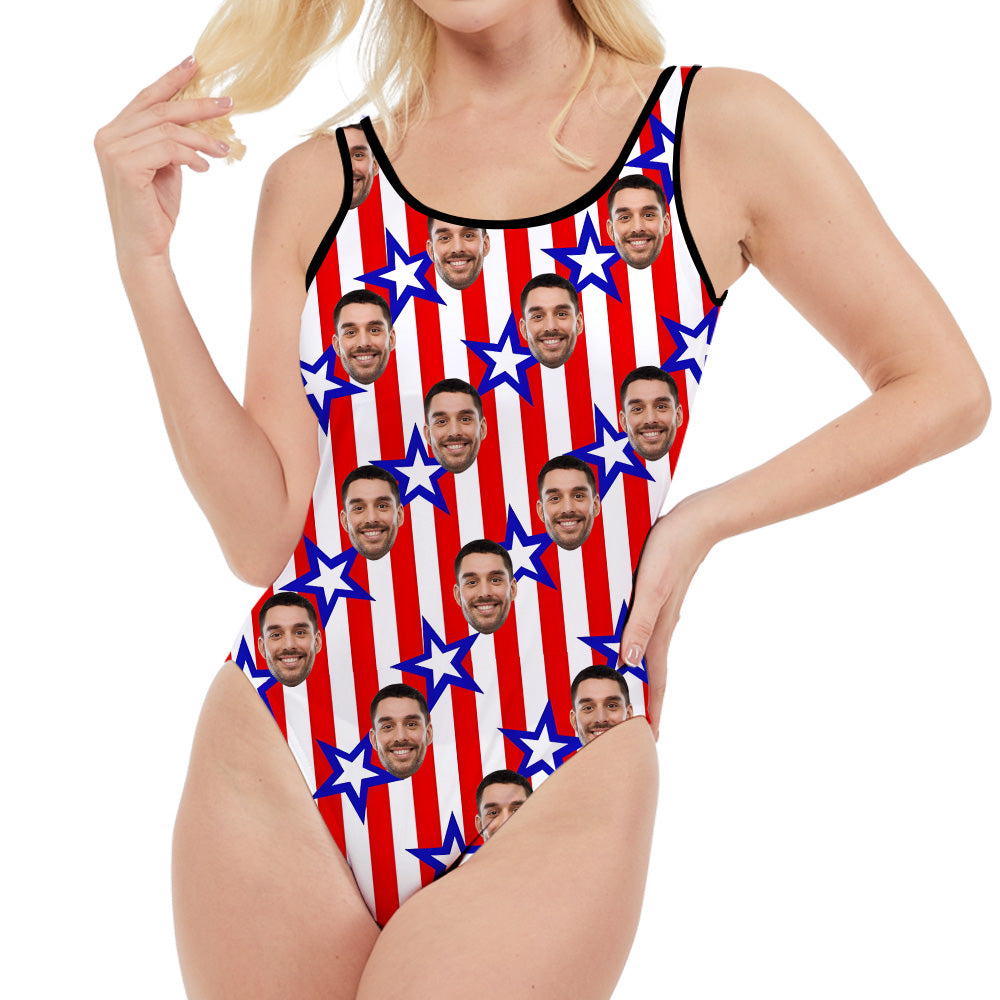 (Tax Included) Unique Custom Face Independence Day Swimsuit Personalized Stars & Stripes