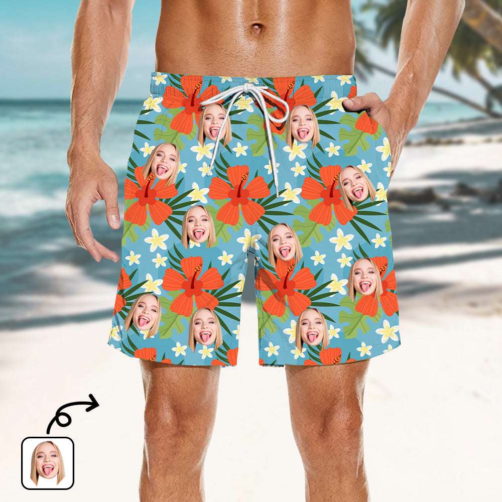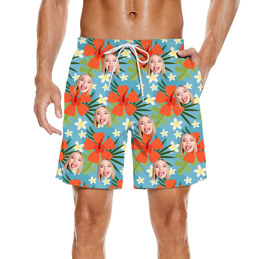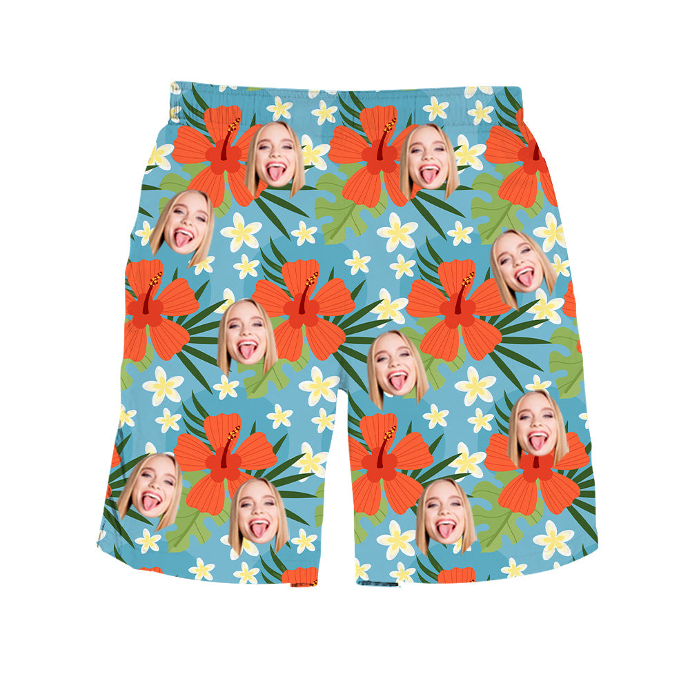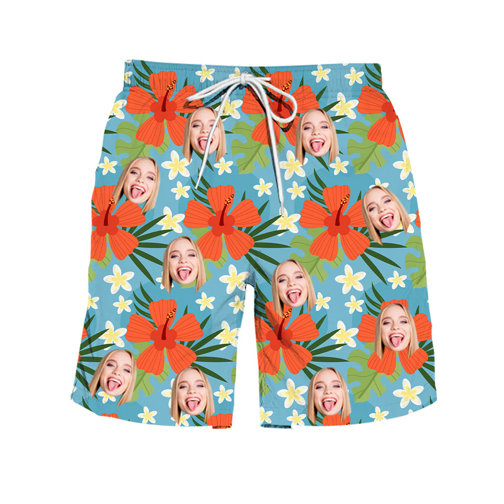 - Either to get a smile out of you or to use every day, you are going to love our custom beach shorts with photo. They are made with the best material and super soft you will enjoy wearing. Customize your beach shorts with your favorite photo face and make the perfect gift! Make the perfect beach shorts for family and friends that they will never forget about.
