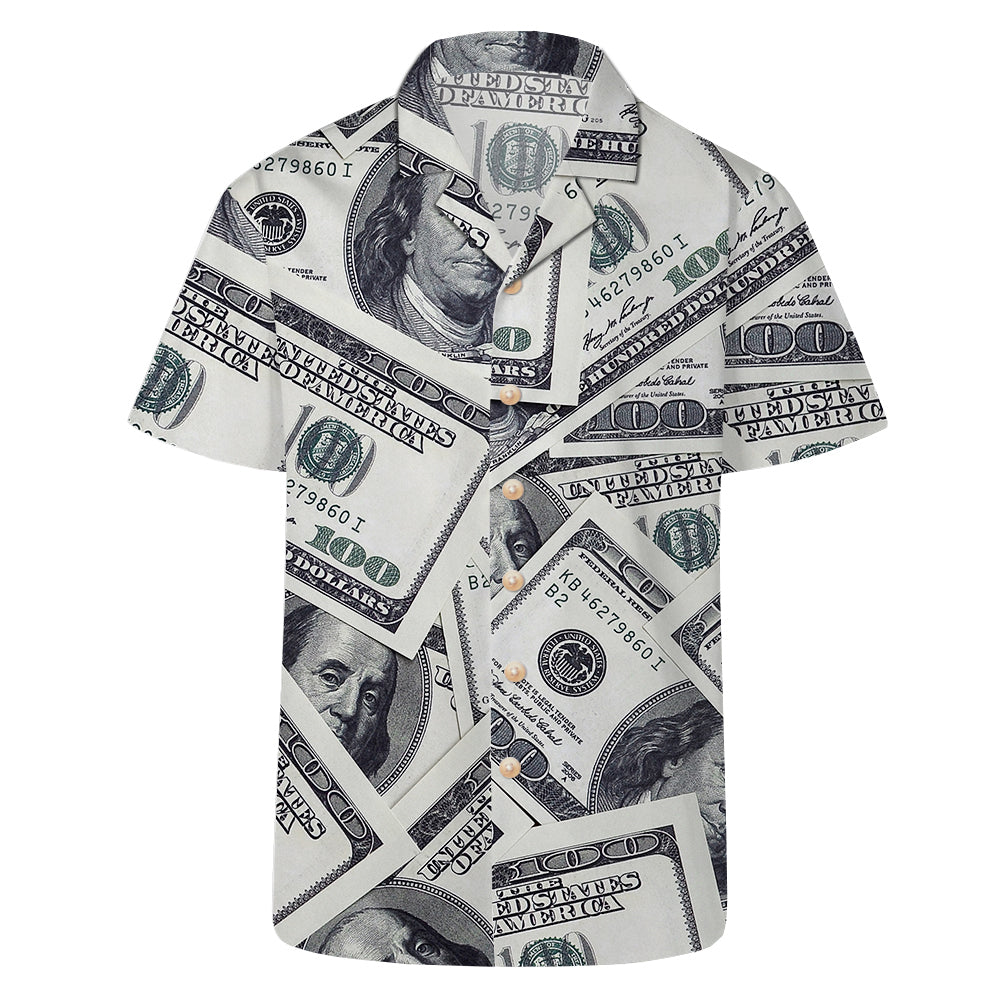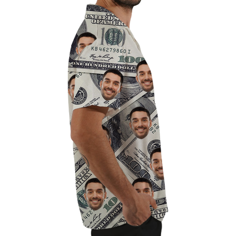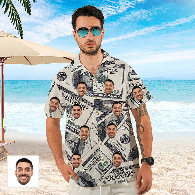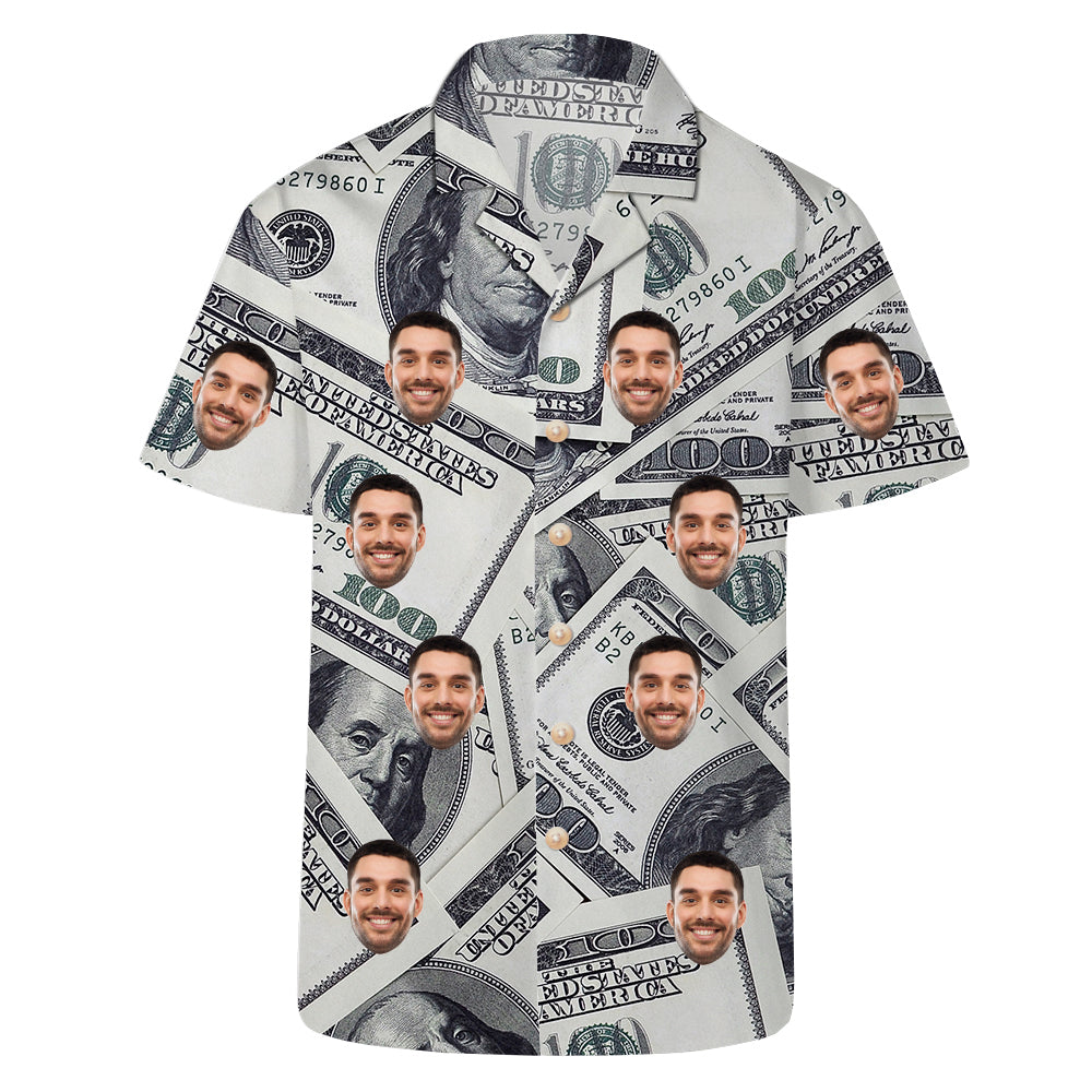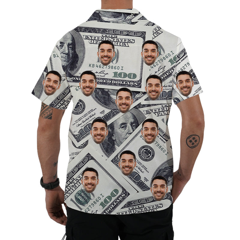 (Tax Included) Vintage Clothes Money Shirt 100 Dollar Bill Hawaiian Lapel Shirt Customizable Face