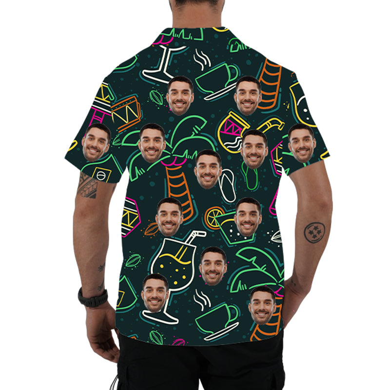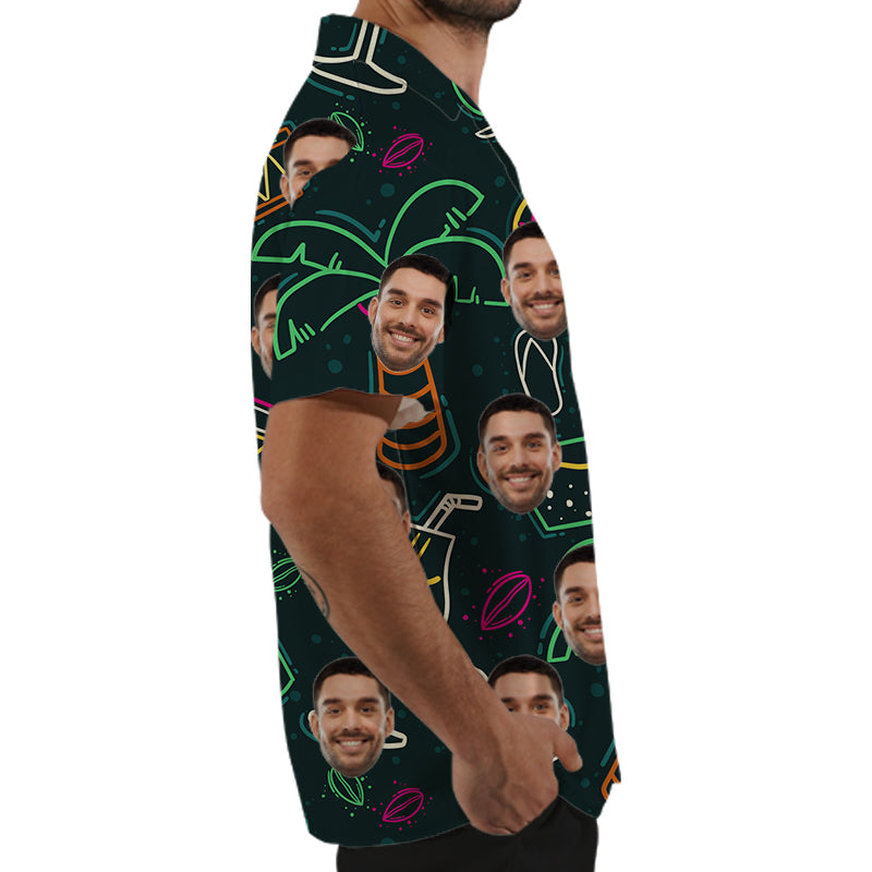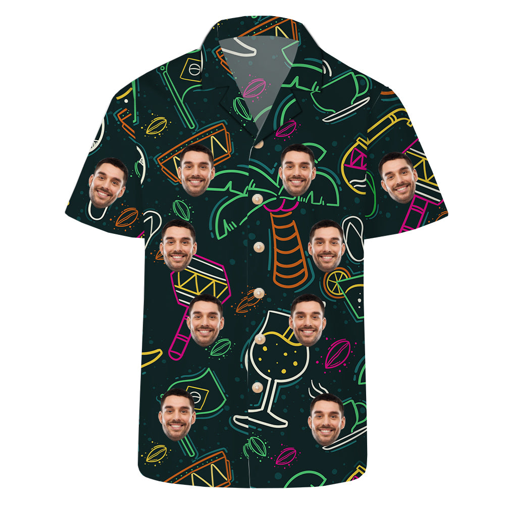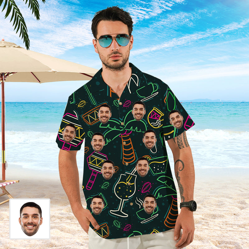 (Tax Included) Vintage Hawaiian Shirt Mens Beachwear Retro Sports Top Neon Party Outfit Customized Face