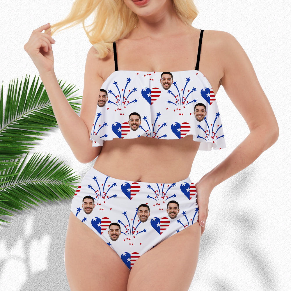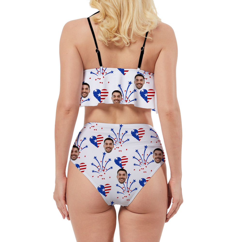 (Tax Included) Women's Ruffled Two-Piece Bikini National Flag and Fireworks