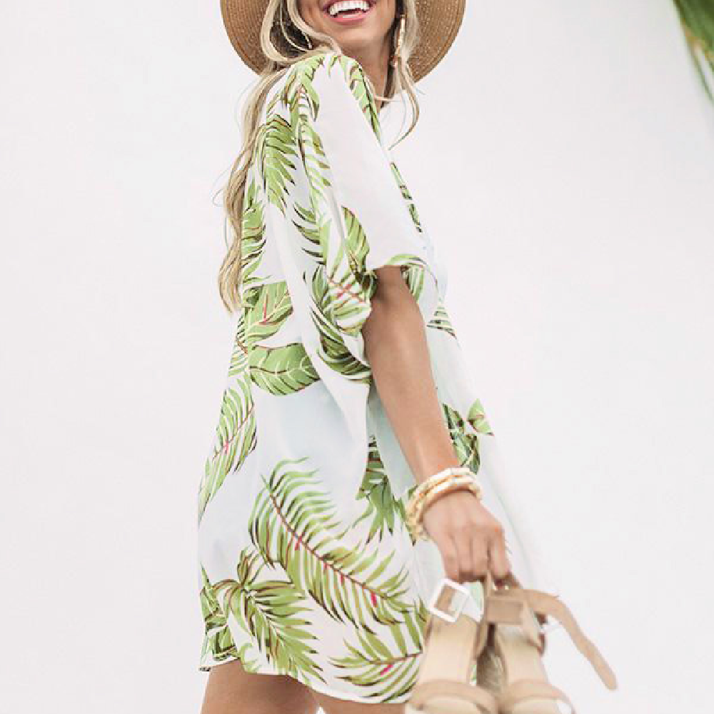 Tropical Print Shawl Women Cover Up Bikini Beachwear