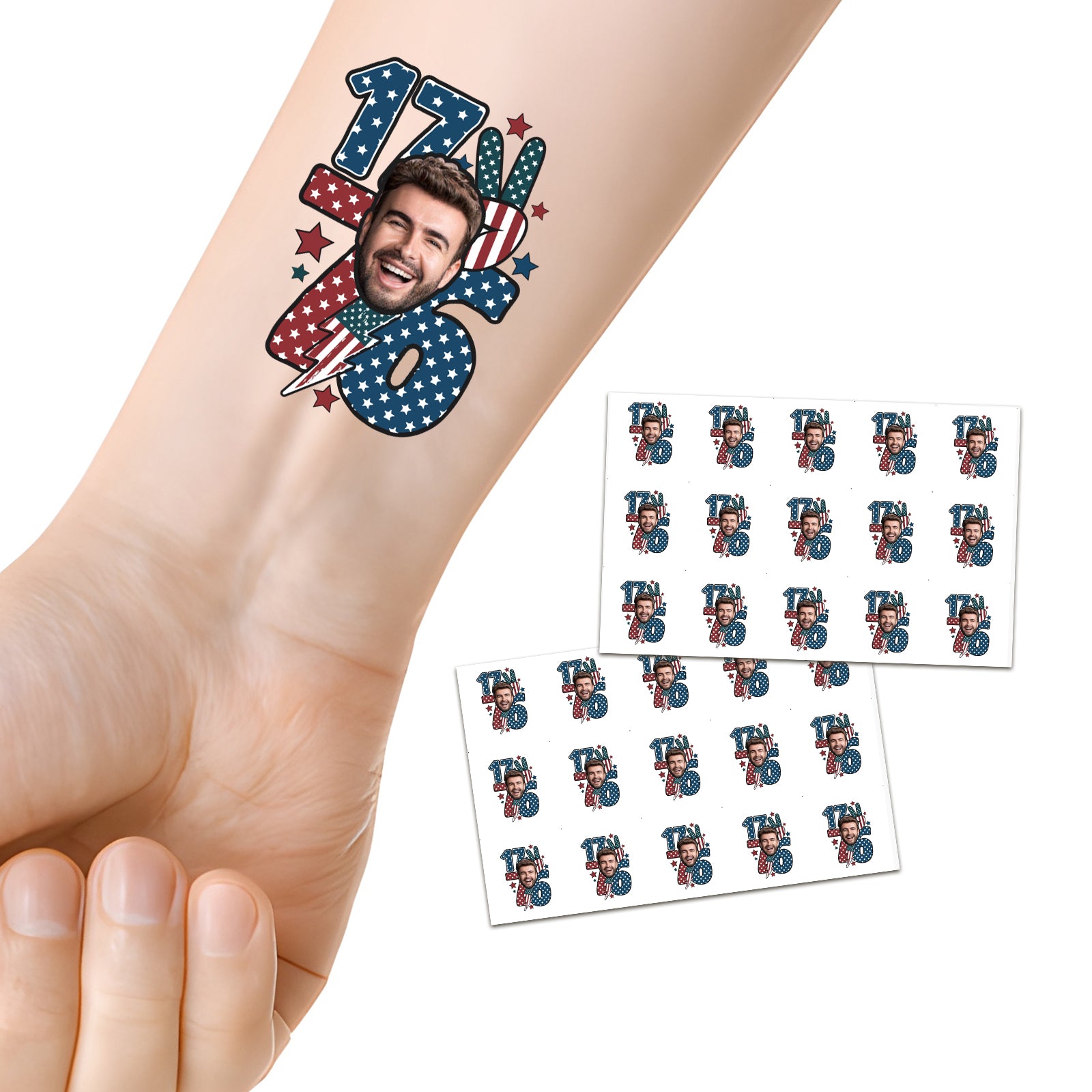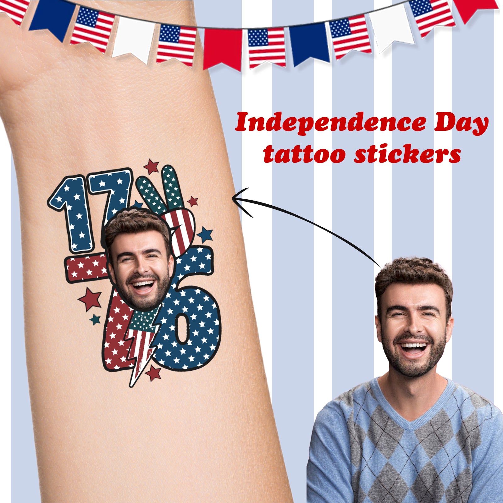 Unique Custom Face 4th July Tattoo Personalized American Flag Pattern