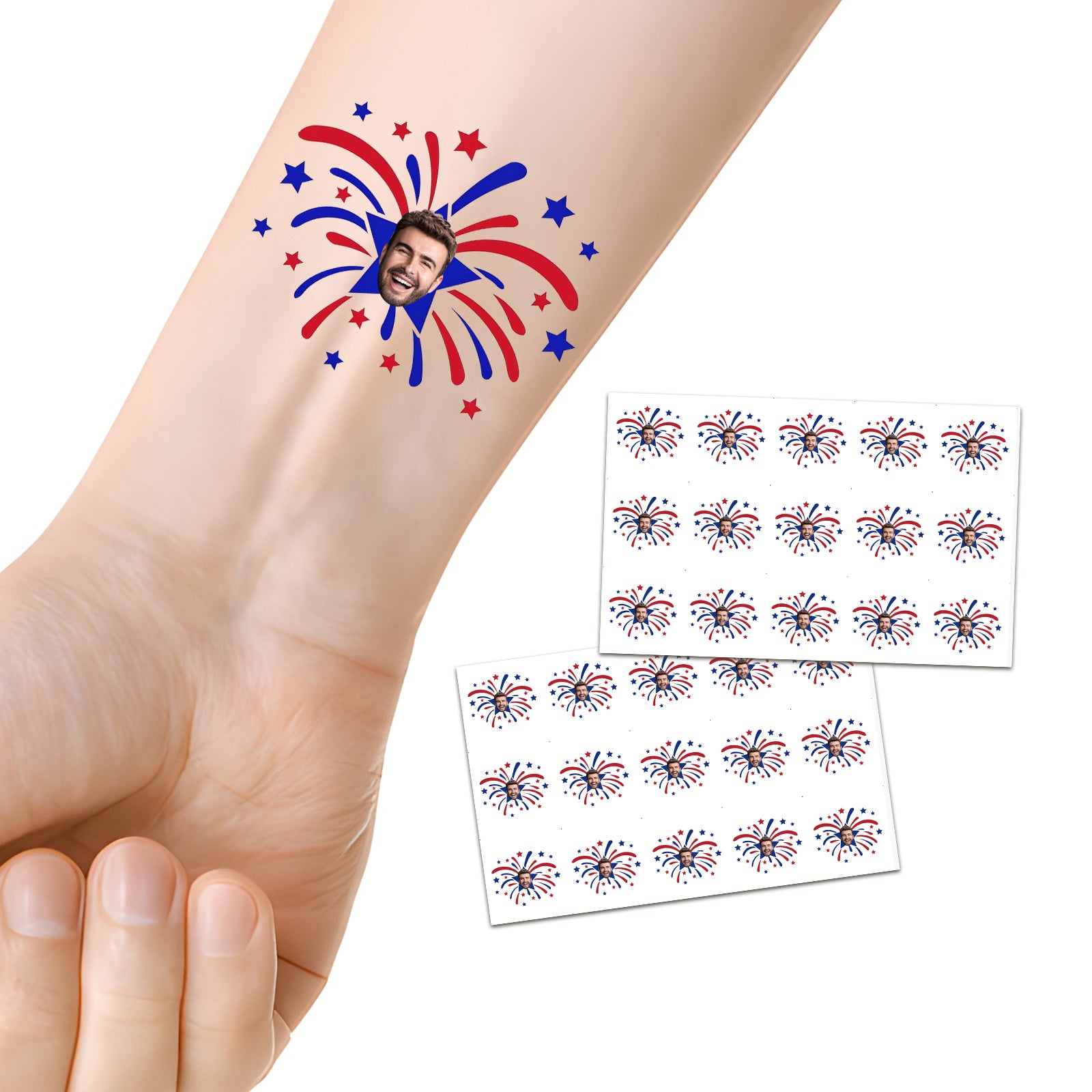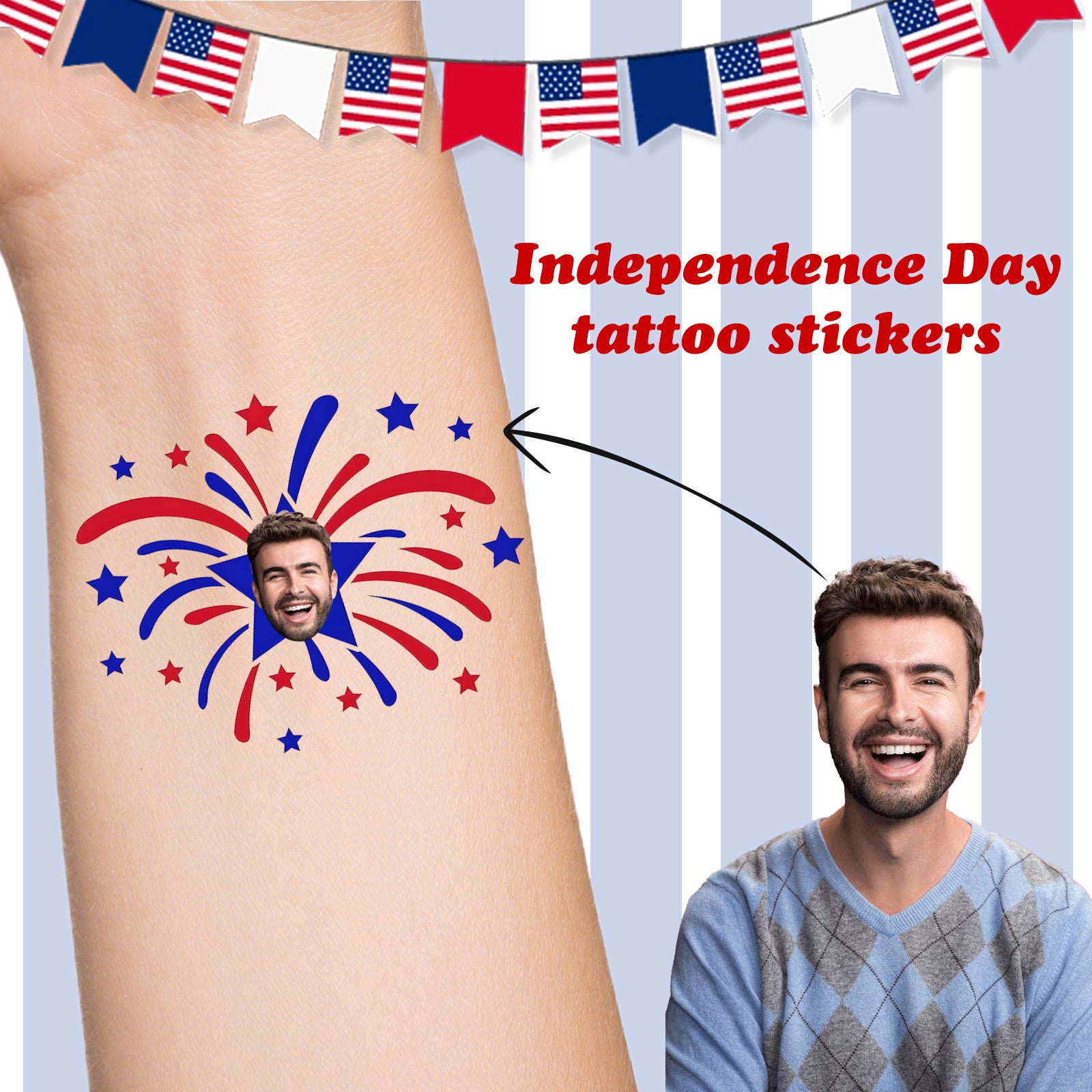 Unique Custom Face Independence Day Tattoo Personalized USA Flag Style