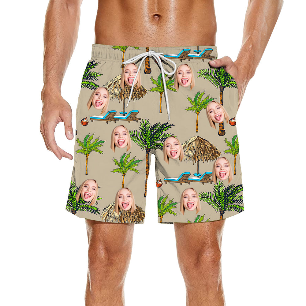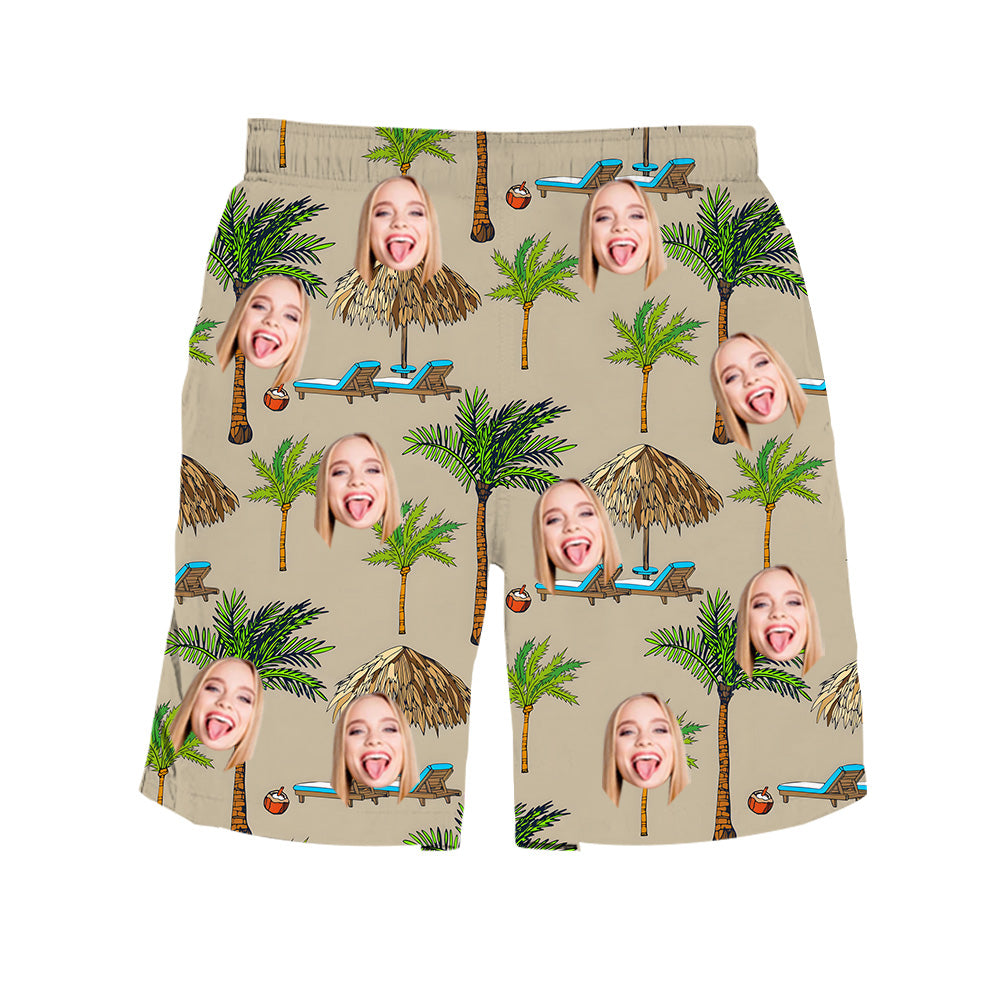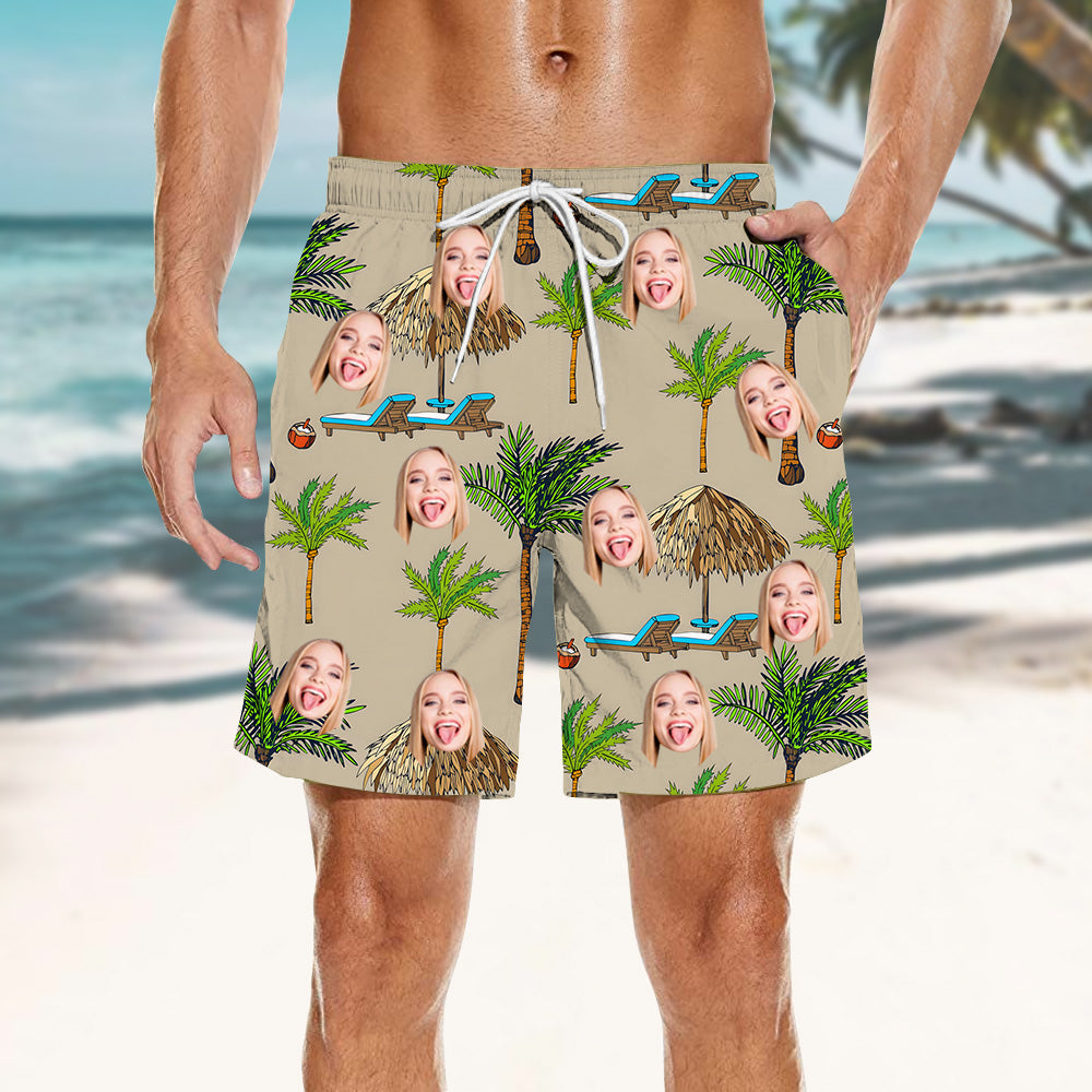Vintage Men's Beach Swim Shorts Custom Face Photo Summer Casual Shorts Personalized Men's Gifts