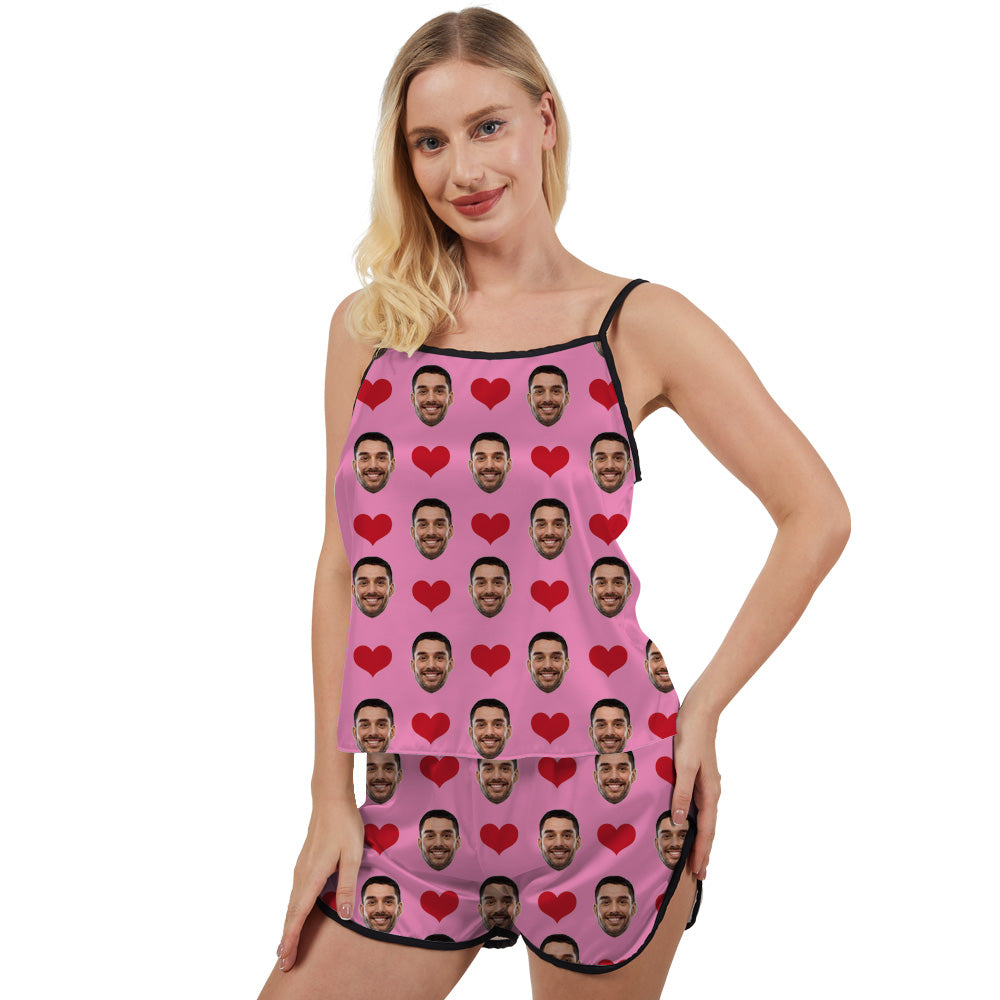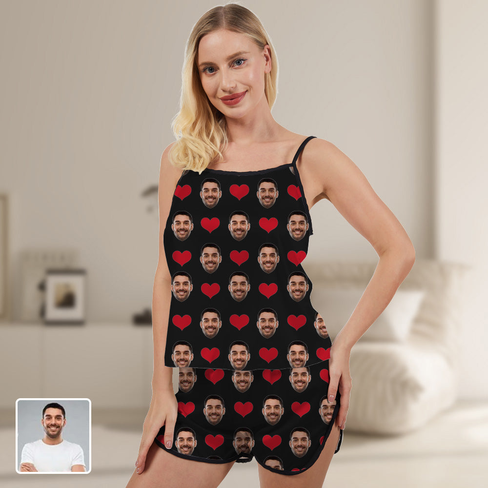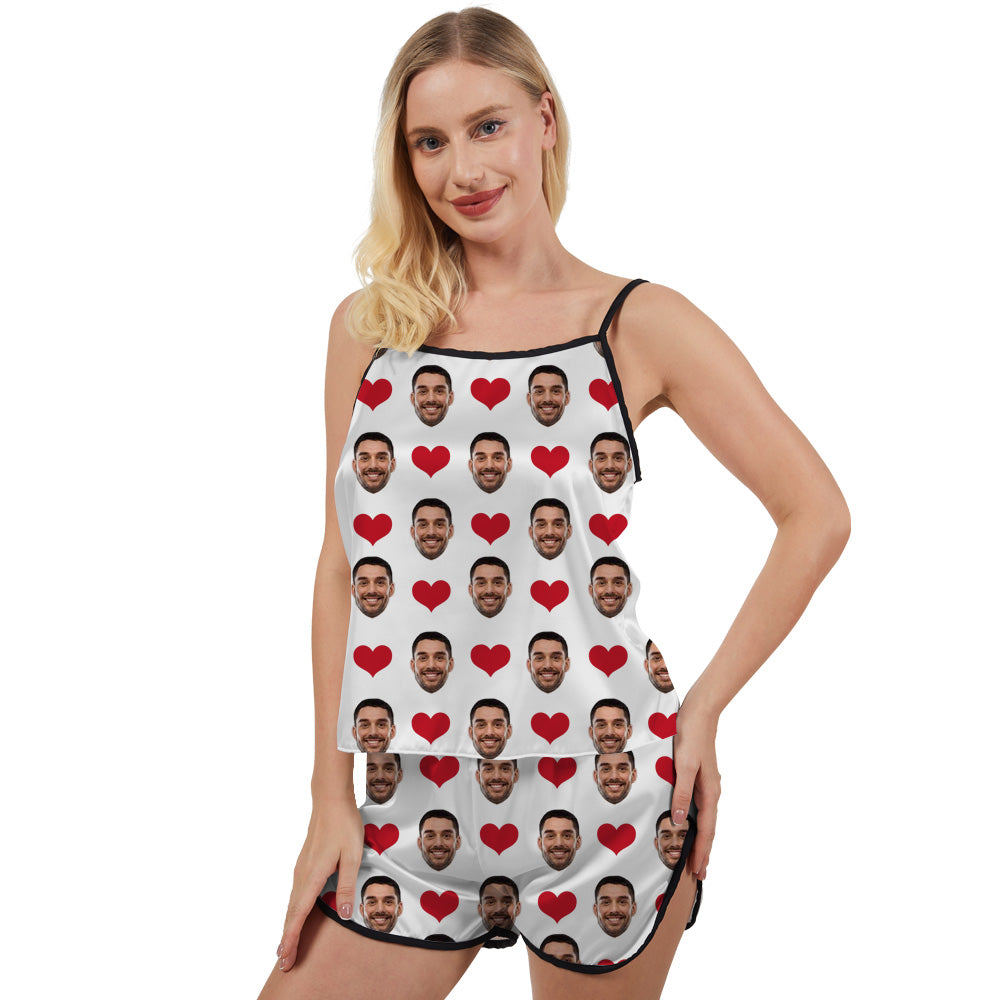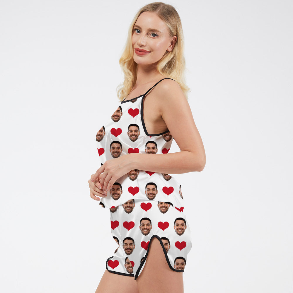 4FunGift® Women's Multi-Color Pajamas Red Love Couple Custom Special Gift